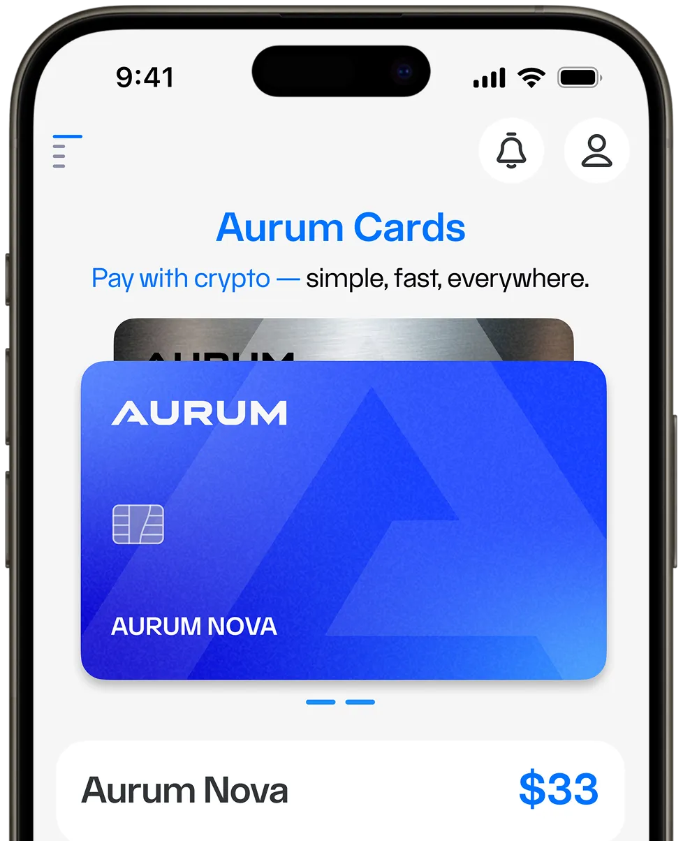 AURUM Neobank bridges the gap between digital assets and real-world payments. Manage, exchange, and spend your crypto seamlessly with a modern banking experience designed for everyday life.
